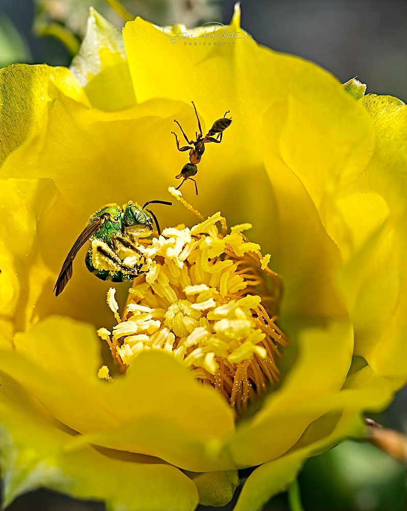 Green Bee and Ant Enjoying a Cactus Flower December 20, 2019 · by Photography By Steve daPonte · in Nature Photography, Purchase a Print. · Purchase a Print Share this: Share on X (Opens in new window) X Share on Facebook (Opens in new window) Facebook Share on Pinterest (Opens in new window) Pinterest Like Loading... Related